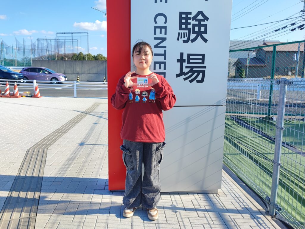 平針試験場での直接受験を通して、技能試験コース研究の重要性を強く実感しました。本番は緊張しますが、繰り返し平針試験場のコースを歩いたり、何度も路上試験コースの動画を見たことで、落ち着いて本番の技能試験に臨むことができました。せいりん自動車学校は、自ら取り組むべき課題が多く大変な面もありますが、その分、自分で判断し安全に運転する能力を身につけることができると感じました。